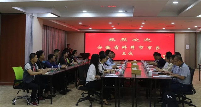 ??2014年7月,時(shí)任蚌埠市委常委、副書記王誠(chéng)帶領(lǐng)蚌山區(qū)委、區(qū)政府等領(lǐng)導(dǎo)到心里程集團(tuán)深圳總部考察招商。