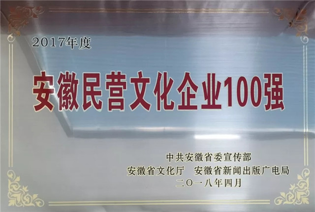 ??2017年,安徽心里程科技有限公司成功入選“2017年度安徽民營(yíng)文化企業(yè)100強(qiáng)”。